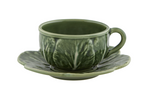 SOLD A set of four cabbage teacup and saucer by Bordallo Pinheiro, Portugal