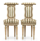A pair of cream-painted and floral striped velvet upholstered boudoir chairs French 19th Century