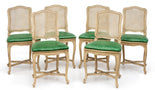 SOLD A stylish set of six white painted cane dining chairs, French Circa 1950
