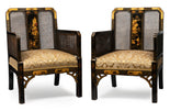 SOLD An exceptional black Chinoiserie lacquer and caned bergere three piece suite English Circa 1920