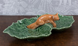An earthenware double-leaf fox dish by Bordallo Pinheiro, Portugal